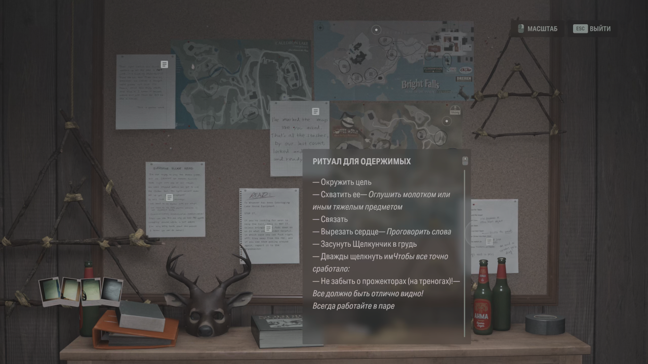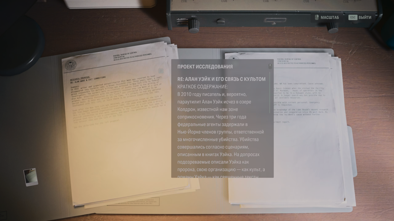 А вскоре на берег озера Колдрон вымыло Щелкунчик — тот самый волшебный выключатель, которым Алан Уэйк однажды убил одержимую Барбару Джаггер, согласно документам, украденным у ФБК. В глазах культа ритуал (о нём позже) по уничтожению теневых монстров наконец-то обрёл окончательную форму. Что немаловажно, в первой Alan Wake Щелкунчик использовался Аланом как орудие против тьмы, из-за чего в трилогии его книг появился определённый ритуал (о нём обязательно позже) по борьбе с одержимыми, а сам выключатель перешёл в иную форму существования, став архетипом.