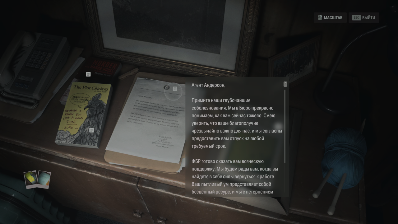 До финала оригинальной Alan Wake II и сцены после титров, где Элис признаётся, что добровольно вернулась в Тёмную обитель, чтобы помочь мужу, мы никогда не задумывались о том, как другие виды творчества взаимодействуют с Тёмной обителью. Но теперь мы знаем, что фотографии, сделанные Элис, могут воплощать в реальность предметы или целые события — её предсмертный фильм не столько прощание с миром и Аланом, сколько попытка оказаться в Тёмной обители с помощью силы своего творчества. И украденный Скретчем Щелкунчик — это не рояль в кустах, а одна из фотографий, которые Элис успела сделать, пока в жизнь претворялся один из черновиков «Возвращения».