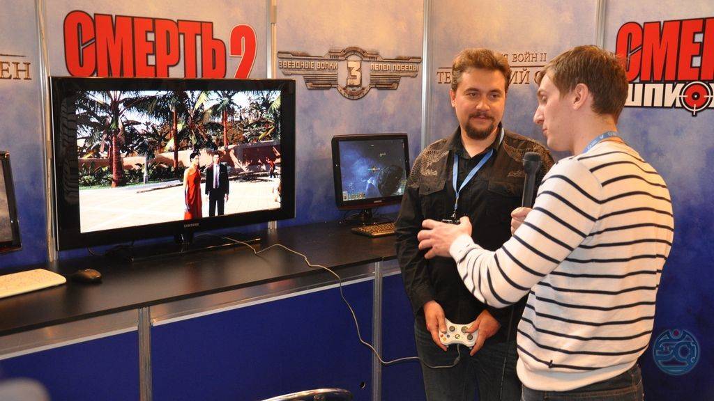 13 мая ровно в два часа дня мы были у стенда «1С». Раньше демонстрацию проектов компания проводила в номере гостиницы «Космос», и вы даже могли видеть фоточки оттуда. В этот же раз интервью мы брали прямо на стенде. КРИ продолжает уменьшаться и, видимо, издатели активно сокращают расходы на конференцию… но сейчас не об этом. О наших впечатлениях в целом от КРИ можно почитать здесь и здесь. Теперь же — о «Смерти шпионам 2».