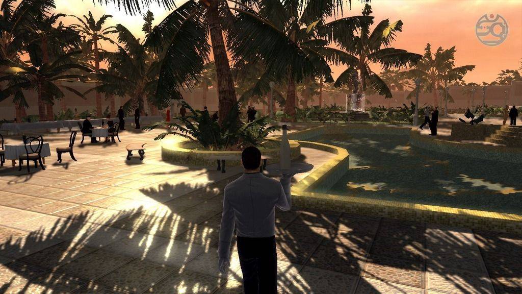 Теперь ничего подобного нет. Миссия начинается с того, что Семен бродит по какой-то загородной вечеринке, где зеленеют пальмы, а на женщинах блестят украшения. Капиталистические пейзажи, товарищи! Однако механика во многом все еще та, «советская». Взял что-то твердое да больше, подкрался сзади и шибанул какого-нибудь официанта так, что он сложился, словно карточный домик (впрочем, мир высоких технологий мы тоже познаем). Дальше прячем беднягу, переодеваемся в его одежду, берем поднос и уже получаем доступ в зал, куда обычных гостей не пускают.