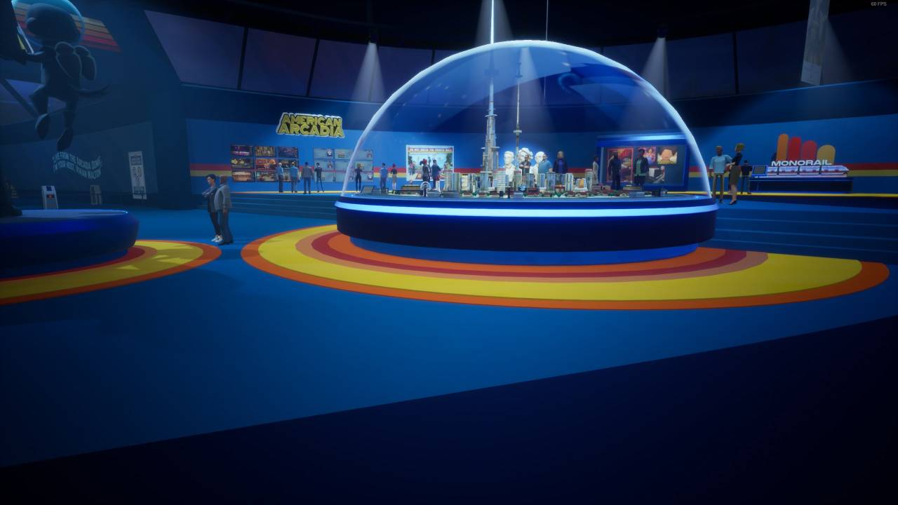 Главное достоинство работы Out of the Blue Games — это не мультижанровый игровой процесс, а подача сюжета (заметьте, не сам сюжет, к которому мы ещё вернёмся) и сопутствующий антураж. Мало того что у American Arcadia есть собственный яркий стиль — художникам по силам отличная стилизация под другие известные образы. Особенно хорошо это понимаешь на уровне с музеем Walton Media, где можно встретить переосмысление знакомых образов американского кинематографа первой половины XX века: плакаты с афишами несуществующих фильмов и мультиков очень похожи на существовавшие в действительности. Не обходится без множества пасхалок — при должном внимании легко заметить отсылки к «Матрице», «Дню сурка», ну и «Шоу Трумана», само собой.