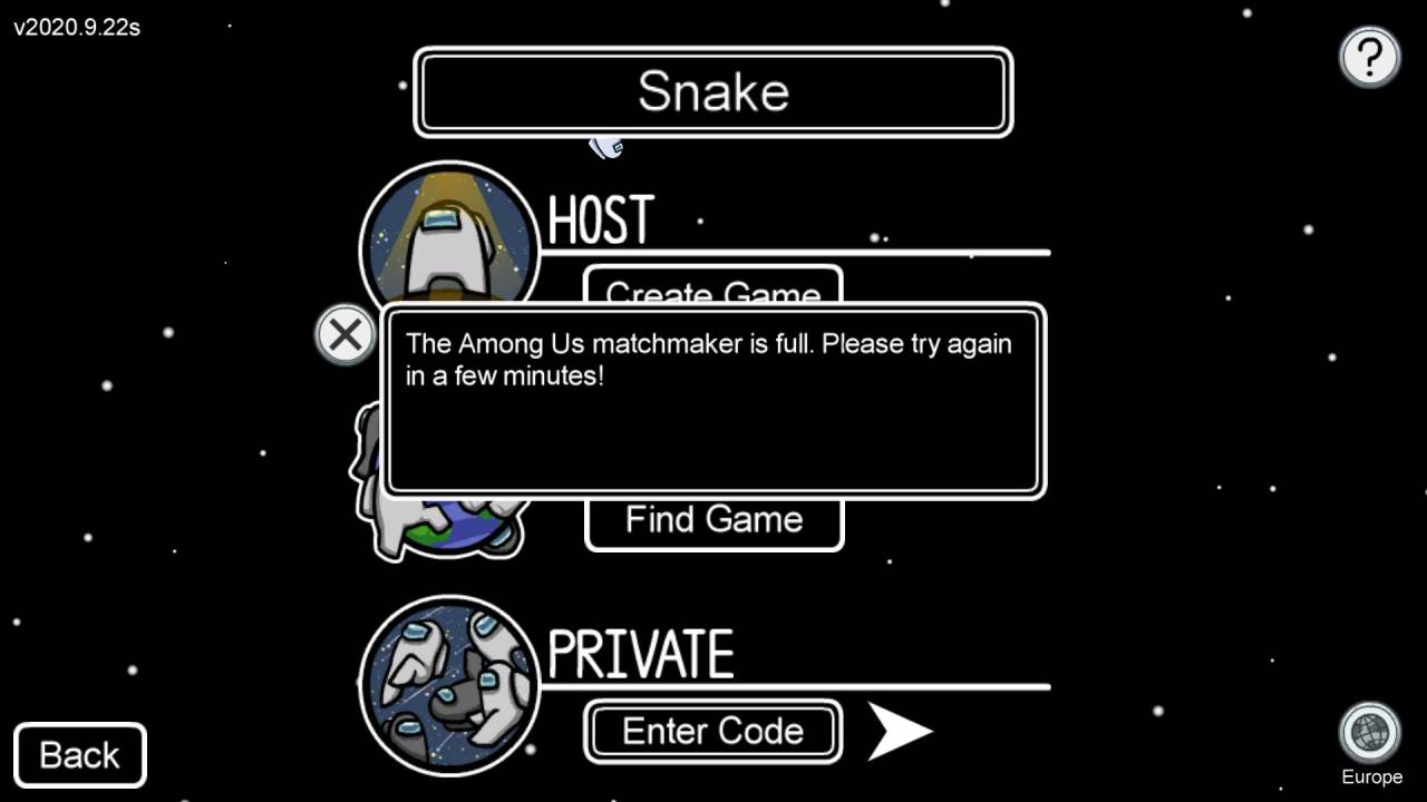 Главный и единственный недостаток кроется в технической стороне Among Us: игра просто не выдерживает запредельного количества фанатов. Даже в будние дни серверы то и дело не пускают по кодам-приглашениям, а уж в выходные и вовсе дают от ворот поворот фразой «Матчмейкинг полон». Авторы явно не рассчитывали на десятки тысяч одновременных пользователей, поэтому первые 10-15 минут любой зарубы начинаются с затяжного сбора с обязательными ошибками у каждого второго космонавта. Сюда же можно записать и необходимость пересоздавать лобби, если хочется поменять количество предателей или сменить карту, – неудобно и, учитывая постоянные перебои, хлопотно.