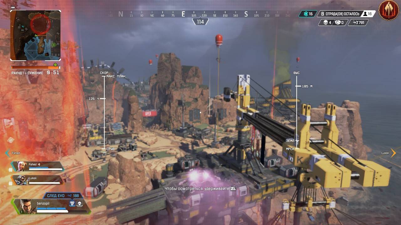 Однако в случае с Apex Legends студия то ли не рассчитала силы, то ли сделала всё возможное, но не смогла добиться результатов лучше. Для начала сухие цифры: независимо от выбранного режима игры, воспроизводится шутер при 30 к/с. В стационарном режиме разрешение составляет 720p, а в портативном – 576p. Всё точно так же, как, к примеру, в The Witcher 3.