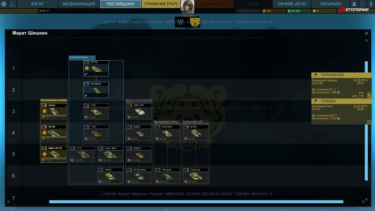 Несколько нетрадиционны и ветви «прокачки» техники. Разработчики решили отказаться от напрашивающейся системы разделения по стране-производителю и поделили все доступные машины между так называемыми поставщиками, которых пока двое. Марат Шишкин и Софи Вельфли — продавцы тяжелой и не очень боевой техники, всегда готовые предоставить для частной военной компании каждого игрока широкий ассортимент своего товара. Были бы деньги и «репутация» — так здесь называется опыт, получаемый за успех в боевых операциях. Впрочем, иногда и толстого кошелька вкупе с хорошей «прокачкой» мало: некоторые образцы доступны для приобретения лишь после выполнения определенных заданий. Набейте несколько тысяч вражеских хитпоинтов на конкретном виде техники или сыграйте с полсотни боев, управляя машиной данного поставщика, — и только тогда для покупки станет доступна новая машина.