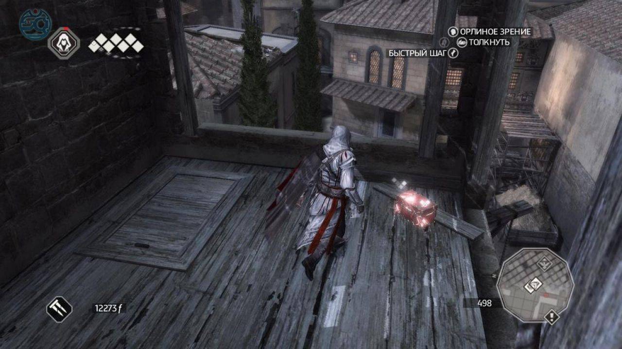 По части «полазать, покарабкаться и попрыгать» Assassin's Creed 2 уверенно уделывает предшественника. Тут причина проста, но меж тем элегантна — архитектура эпохи великого творчества была, скажем так, поинтересней. Вот лезем мы на дом — не ищем какие-то выступы, торчащие непонятные пеньки, кривые кирпичи и тому подобные строительные некрасивости, а практически благородно и грациозно взбираемся по шедеврам архитектурного искусства. То за прекрасный многоцветный витраж уцепимся, то изящную лепнину в качестве опоры используем. И везде замысловатые узоры, причудливая вязь, колонны, портики и прочие прелести Европы времен Ренессанса.