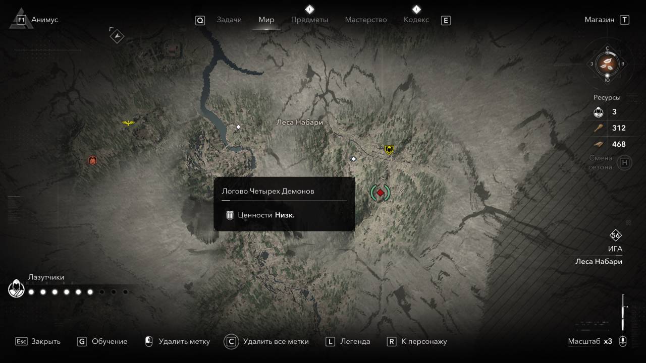 Расположение предмета: придётся накопить фрагменты и разблокировать через проект «Анимус — Наследие» (на тринадцатом уровне).