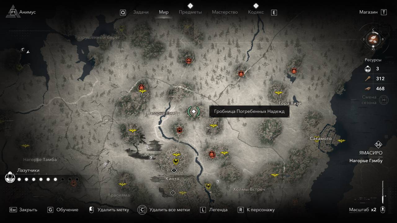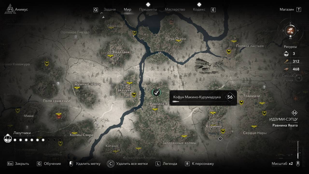 Расположение оружия: вам нужно завершить головоломку в кофуне Симосато и открыть легендарный сундук в конце гробницы. Это место расположено в регионе Кии. Чтобы найти вход, двигайтесь на юго-восток Кумано Сандзан.