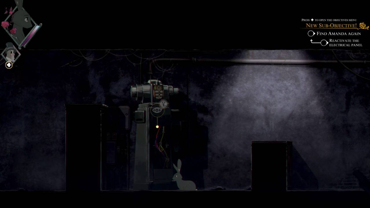 Существенно разнообразит игровой процесс то, что Лана может превращаться в кролика. Эта особенность позволяет ей пролазить в недоступные ранее места и двигаться быстрее. Правда, бегать тут себе дороже: повсюду расставлена хрупкая посуда, которая тут же разбивается и выдаёт твоё местоположение преследователю. В какой-то момент я просто посбивала все бутылки, пересидела рысканья злодея и потом спокойно носилась по локации. Не уверена, что задумывался именно такой способ прохождения, но аккуратно красться туда-сюда было уже просто невыносимо.