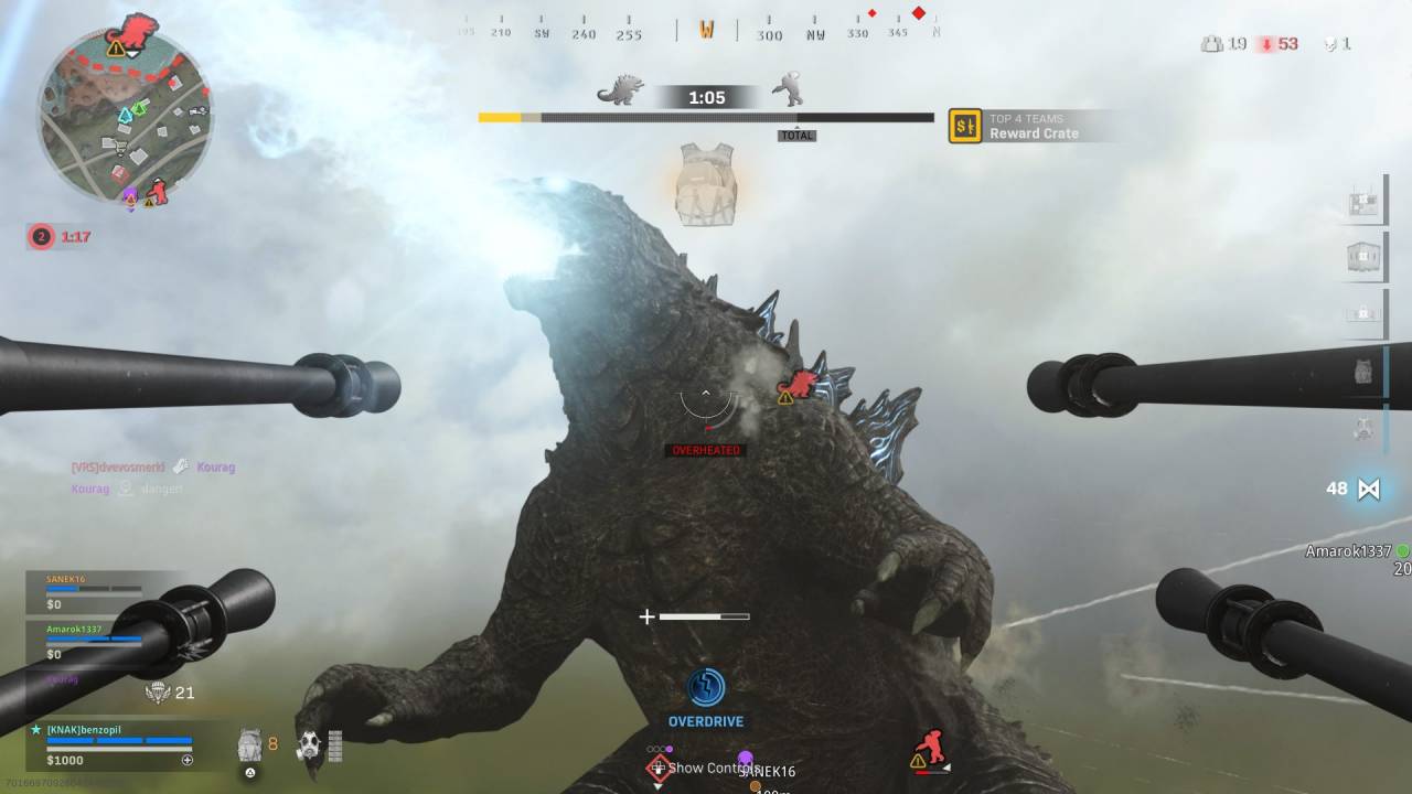 Как бы то ни было, ивент получился не самым плохим, пусть к нему и есть вопросы. Хотя на загрузочном экране красуется логотип Godzilla vs. Kong, существа никак друг с другом не контактируют. Это скорее «Годзилла и Конг против игроков», поскольку только участникам матча они доставляют неудобства. Некоторых это разочаровало, но мне не совсем понятно, как драка двух монстров друг с другом изменила бы этот режим, так что минусом я это не считаю.