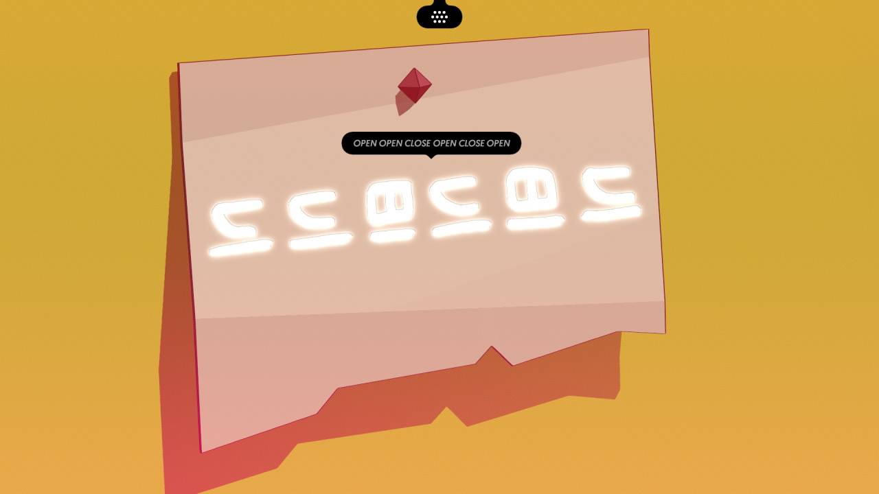 Объяснить ключевую механику игры проще всего будет на примере. Первая же локация встречает вас захлопнутой дверью; рядом с ней стоит рычаг, который её открывает и закрывает, а над ним висит табличка — логично предположить, что инструкция. На этой табличке четыре глифа: два сверху и два снизу, причём символы справа одинаковые — должно быть, они означают «дверь», а оставшиеся — «открыть» и «закрыть».