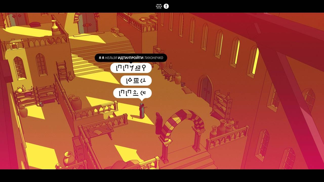 Это здорово, однако в целом разнообразие местных языков сильно уступает реальному: в Chants of Sennaar все пишут слева направо, а одному глифу всегда соответствует одно слово — ваша задача гораздо проще, чем у Шампольона, который первым доказал, что древнеегипетские иероглифы могут обозначать как отдельные звуки, так и целые понятия. Тонкости вроде родов, падежей, спряжений, пунктуации и даже времён в CoS также не встречаются. Условно говоря, ваша задача — догадаться, что глифы А, Б и В означают «мама», «мыть» и «рама» и расставить их в нужном порядке, и тогда игра сама образует из них грамматически корректное предложение. Наверное, оно и хорошо — никого, кроме горстки лингвистов, не заинтересовала бы игра про падежи и запятые. Угадывать значения слов всяко веселее, чем возиться со склонениями.
