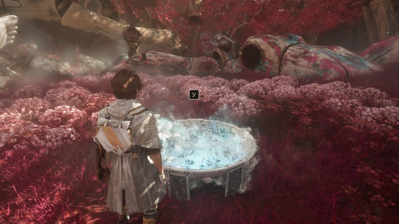 Расположение: Селение жестралей. На пути к арене можно обнаружить Жестральского лекаря — белого жестраля, лежащего на боку. Напротив него есть синие корни, преграждающие путь. Когда отыщите 4 пропавших жестралей для Састро и разблокируете Красочный взрыв, обязательно вернитесь сюда, чтобы получить пиктос.