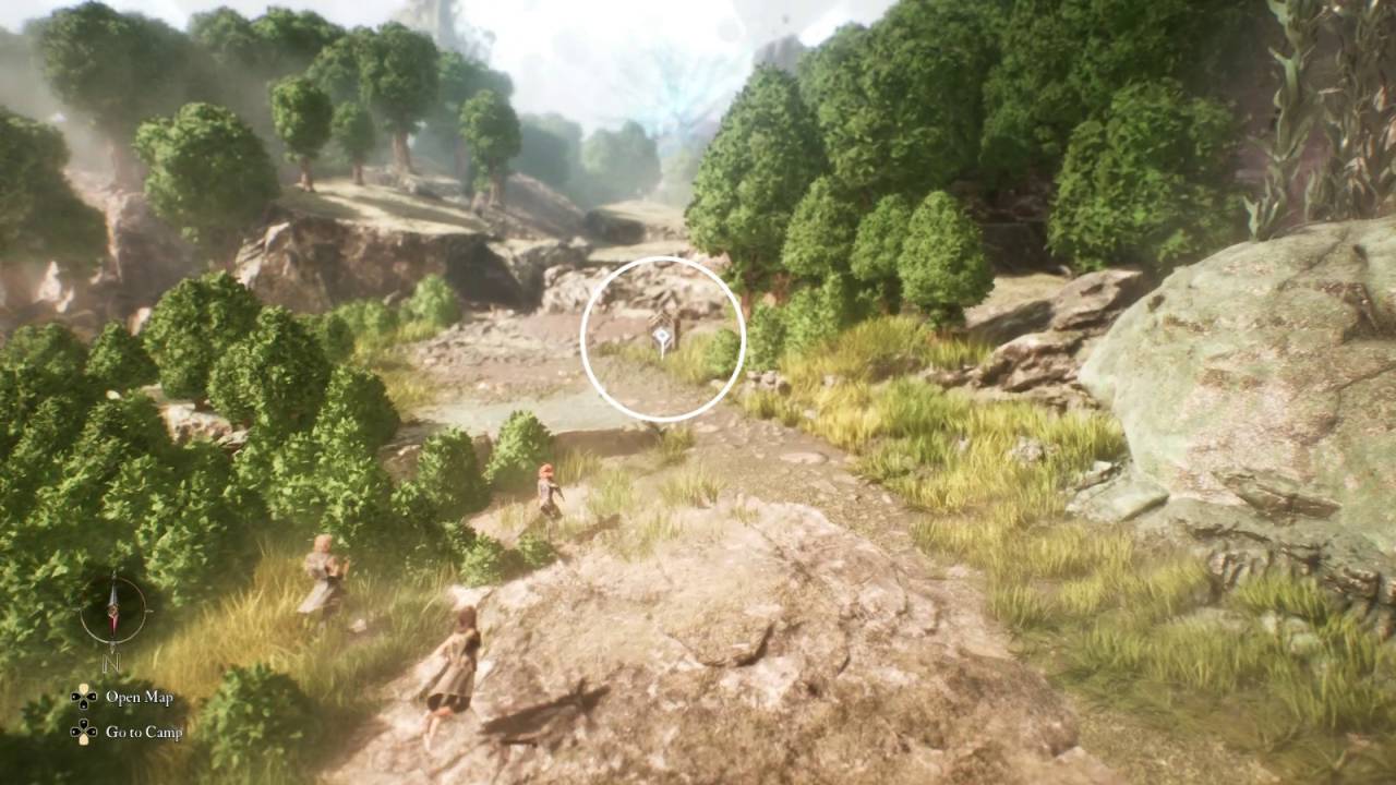 Идите на восток от этого места — там враги охраняют ещё один цвет люмины. Несмотря на то, что вы уже сражались с подобными мобами, эти заметно сильнее, так что будьте осторожны. К западу отсюда находится маленький пляж с ещё одним жестральским торговцем по имени Караби. У него можно приобрести наряд Маэль — «Люмьер», наряд Гюстава «Люмьер» и причёску Гюстава «Короткая стрижка». Теперь можно направиться ко входу в Древнее святилище, которое мы заметили ранее, и продолжить игру исследованием этой локации.