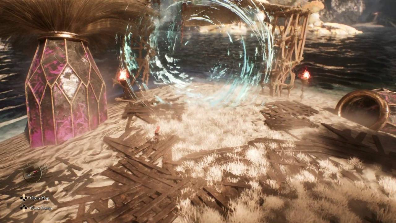 Продолжая путь на запад от жёлтых деревьев, вы выйдете на пляж с порталом на Жестральский берег.