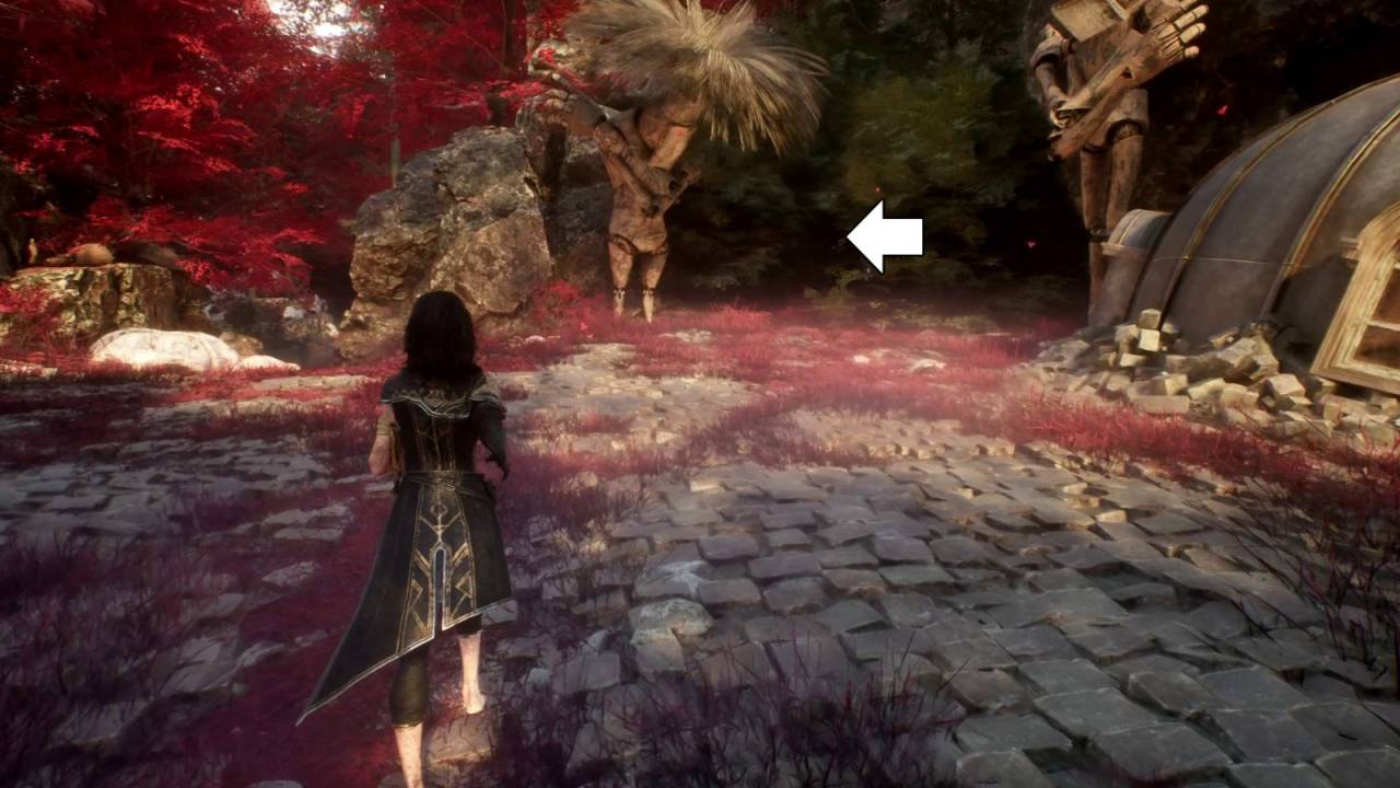 Если пойти на север от жёлтых деревьев, вы наткнётесь на дополнительного полевого босса, Хрома-брюлера. Пока оставьте его в покое — он слишком силён на данном этапе (но, если хотите проверить — вперёд, просто знайте: без идеального мастерства он вам всыплет по самый не горюй). В небольшом лагере за ним можно найти 1775 единиц хромы.