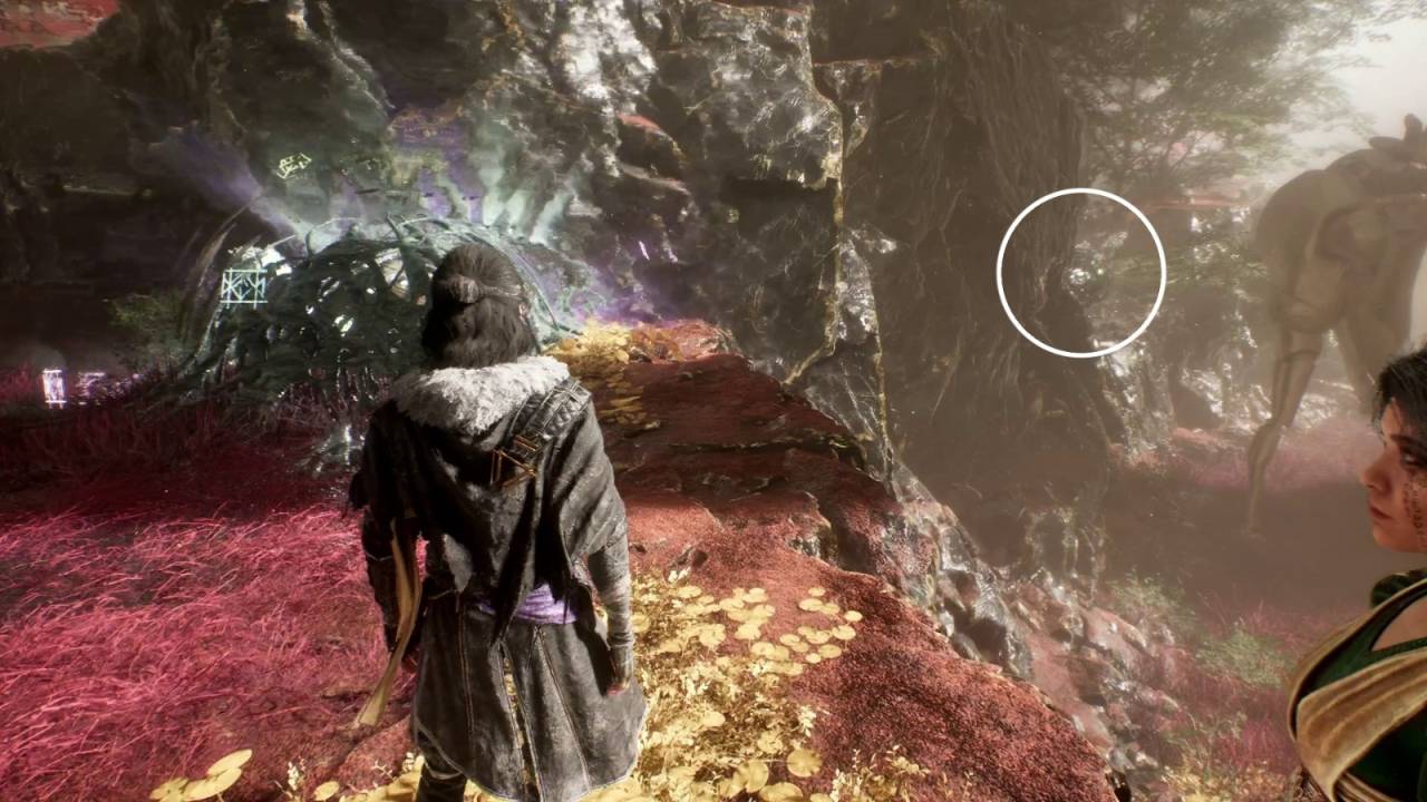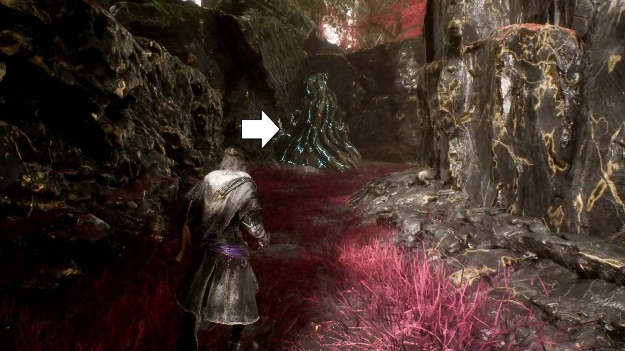 От флага экспедиции «Загрязнённые Утёсы» поднимитесь вверх по винтовой лестнице. Когда окажетесь на открытом воздухе, осмотрите правый край утёса — там лежит грандиозный катализатор хромы. С помощью крюка поднимитесь на следующий уступ и соберите 4260 единиц хромы, валяющиеся слева от дороги. Двигаясь дальше, вы заметите, что мир вновь становится чёрно-белым. Просмотрите очередную семейную сцену, а затем продолжите путь, чтобы локация вновь заиграла множеством красок. Как только краски вернутся, ищите слева культисток с мечами. Прежде чем подойти к ним, загляните в правую сторону, чтобы найти вражескую группу из трёх жнецов-культистов. Победив их, вы получите оружие «Шарион» 15-го уровня и 2150 единиц хромы, которые охраняли мобы.