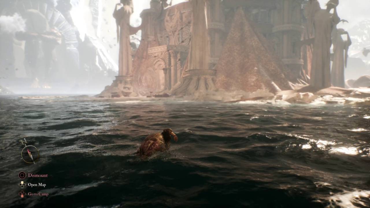 На этом трёхстороннем перекрёстке осталось отправиться на север. Плывите вверх по реке, чтобы найти небольшой пляж с правой стороны. Здесь есть лагерь с цветом люмины. Продолжите заплыв на север, чтобы достичь большой открытой водной территории к северу от Старого Люмьера. Залутайте пляж слева (тот, что на востоке от портала в Старый Люмьер) и соберите 2715 единиц хромы.