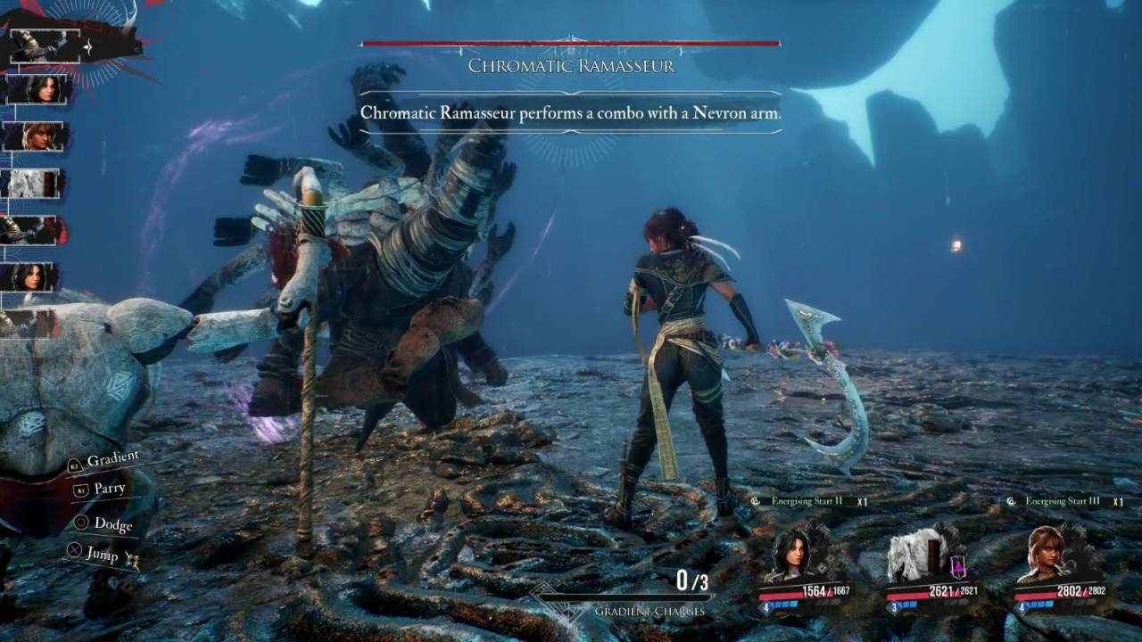 Как обычно для хроматических боссов, этот враг похож на обычного собирателя, но больше, опаснее и соответственно сложнее. Кроме того, в отличие от обычных атак, этот босс может мгновенно убить любого персонажа, который попадёт под его удары. Особенность этого боя заключается в том, что, несмотря на происходящее, босс будет продолжать атаковать снова и снова — реально, вы не сможете вставить свою атаку, пока не сможете парировать и контратаковать противника. Когда босс будет сломлен, у вас будет несколько ходов, чтобы нанести как можно больше урона и наложить дебаффы (ожоги не помешают), прежде чем он восстановится, и процесс повторится заново.