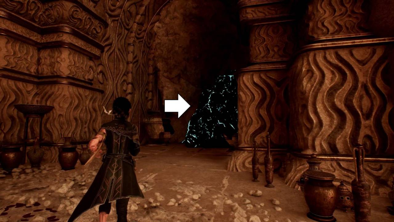 Справа ищите ещё один сверкающий катализатор хромы. Чуть дальше — крюк: с его помощью можно покинуть комнату после убийства босса. Хотя врага можно и вовсе проигнорировать. Теперь, если хотите, можете напасть на босса.
