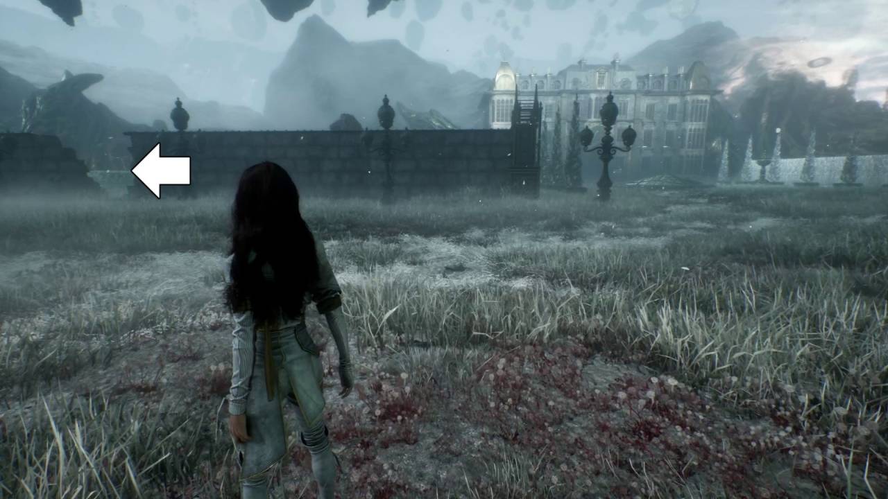 Посмотрите вдаль и увидите особняк. Прежде чем идти к нему, осмотрите трещину в стене сада слева. Пройдите внутрь и сразу поверните направо — у ворот лежат 2495 единиц хромы. На другой стороне сада ищите дверь, ведущую в особняк. Воспользуйтесь ей.