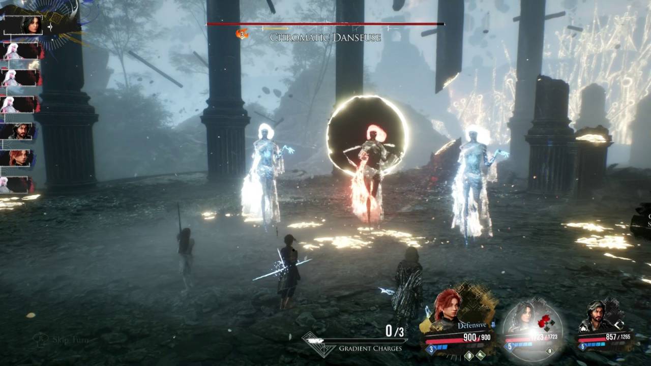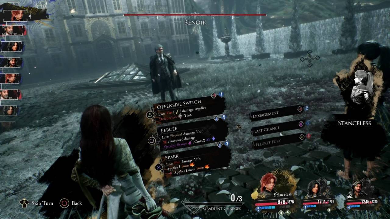 Одна из самых опасных и уникальных атак Ренуара — это способность, позволяющая ему стереть участника Экспедиции. Что-то вроде хода от Бутонье, которые поглощает ваших персонажей, но в этом случае исчезнувший герой больше не вернётся — его нельзя даже воскресить соответствующим тоником. Поэтому крайне важно применить контр-градиент в момент, когда Ренуар начинает размахивать мечом в сторону чёрной сферы, которую он вызывает. Это предотвратит исчезновение и нанесёт дополнительный урон.