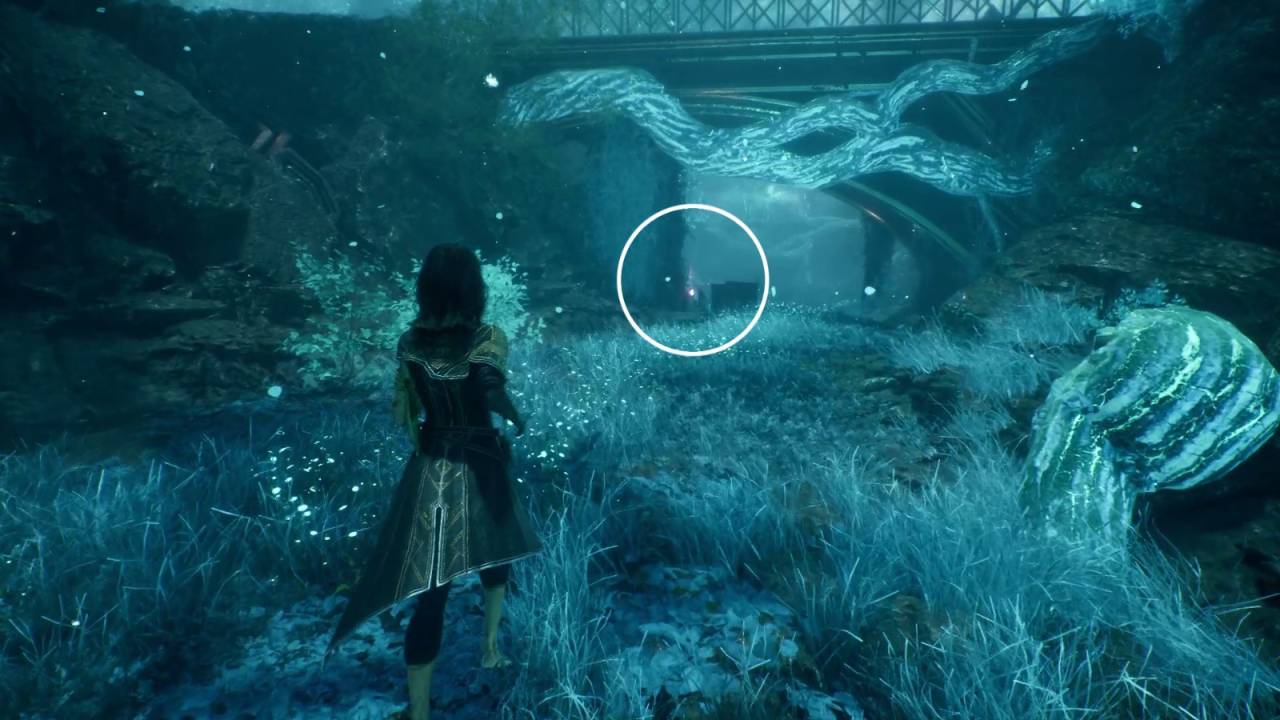Внизу оглядитесь — позади будет Цвет Люмины, а впереди — мост. Справа — путь под мост. Сначала пройдите по верхнему левому пути, победите аббаста и возьмите катализатор хромы у края моста. Спуститесь под мост и победите еще одного аббаста. Под мостом — еще один Цвет Люмины. За мостом — ещё один враг и смола, нужная Жбану. Рядом есть подъём — около него, слева, на выступе — осколок тоника возрождения. Вернитесь к Жбану и отдайте смолу. После короткого диалога прицельтесь и выстрелите в навершие на его посохе, чтобы поджечь. После ещё одного разговора вы получите осколок тоника здоровья.