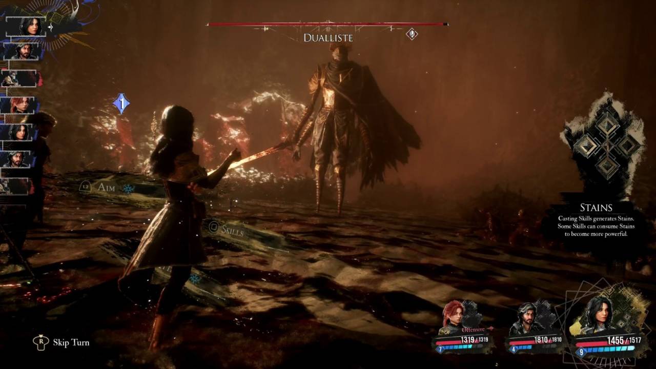 Во время первой фазы избегайте ударной волны, двух комбо (на 4 и 6 ударов), от которых довольно легко уворачиваться или которые даже можно парировать. Среди других атак — «Кровавая буря»: Дуалист вызывает теневых клонов, которые четыре раза атакуют случайного участника отряда. Тайминг у этой атаки может показаться сложным, так что сначала лучше просто уклоняться, пока не привыкнете, и только потом пробуйте парировать.