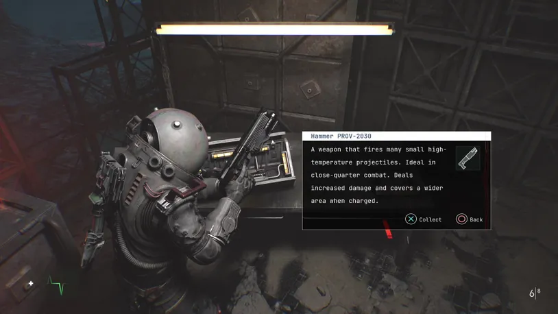 После того как используете предохранитель и попадёте в коридоры, заполненные биомассой, вы войдёте в комнату с колонной биомассы по центру. Оттуда перейдите в небольшую комнату с правой стороны, где на столе лежит нужный коллекционный предмет.