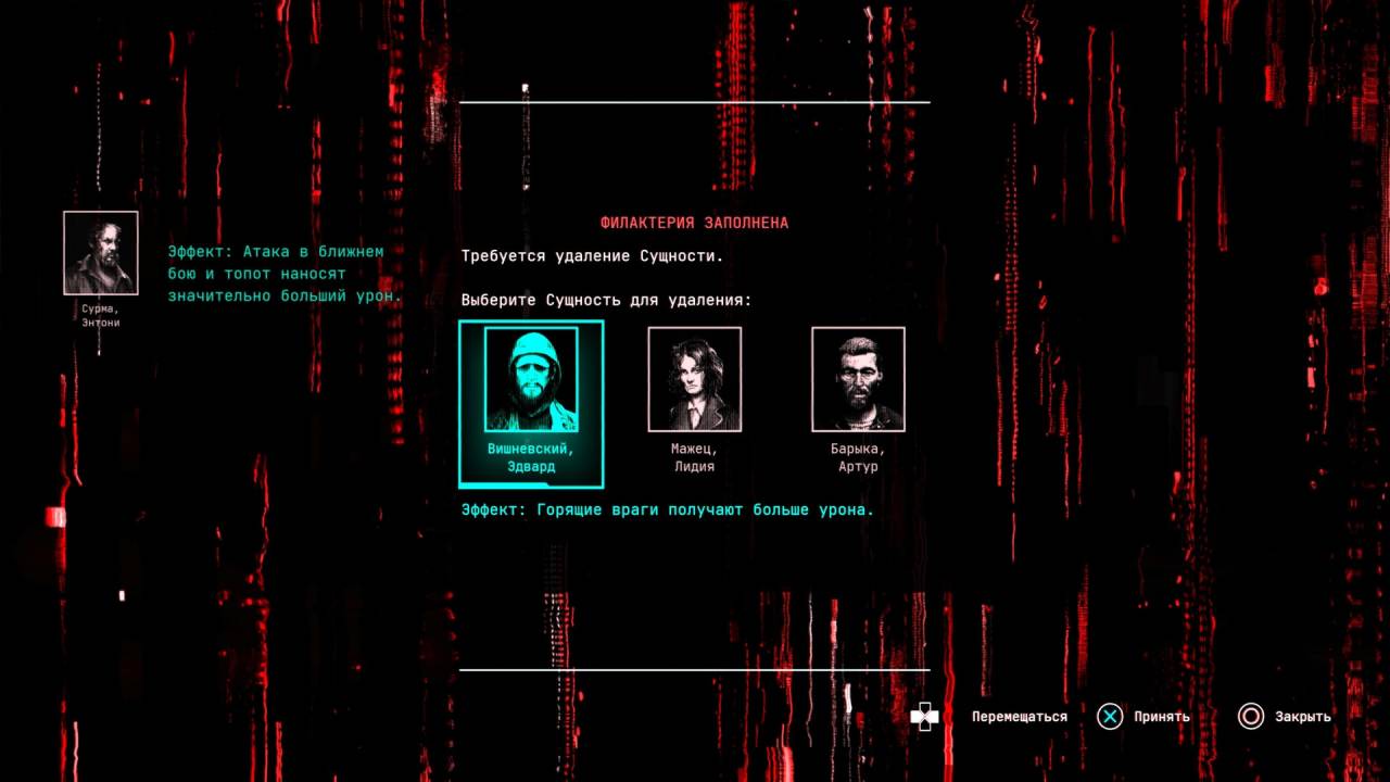 Кажется, единственная механика, которую вы не встретите в других сурвайвл-хоррорах, — перенос сознания. Помещая чью-то цифровую личность в тело протагонистки, вы приобретаете определённый пассивный бонус. Но интереснее всего в этой системе не перки, а то, как механика устроена. В так называемом филактерии может храниться одновременно не более трёх сознаний, а значит, в какой-то момент придётся решить: кого оставить, а кого стереть навсегда. Истошные крики и мольбы о пощаде, сопровождающие удаление сущности, пугают не хуже иных скримеров.