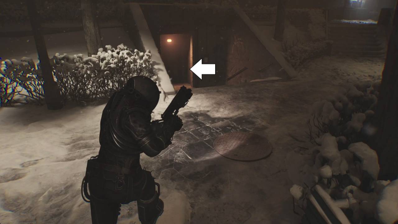 Выйдите наружу и проверьте информационную доску напротив выхода с документом «Аварийная сборка». Выйдите из здания и идите в правую сторону от него, чтобы найти немного металлолома. Продолжите движение по главной тропе, чтобы добраться до фонтана, который видели ранее. На этот раз он замёрз. На скамейке слева лежат химикаты. Идите по тропинке мимо фонтана, и увидите уходящую вниз лестницу. Она ведёт в Убежище. Дверь заперта, а на ближайшей стене висит документ «У меня есть ключи!». Таким образом, вам нужно вернуть ключи.