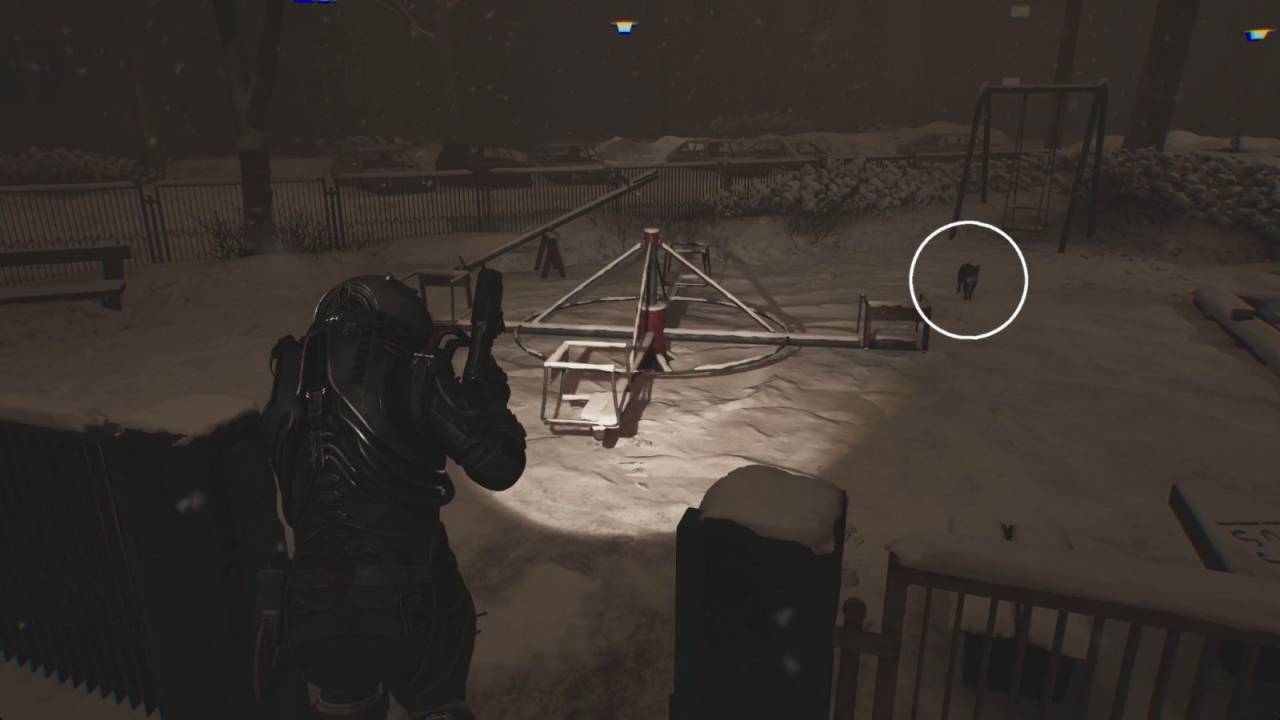 Можете выйти из подвала и вернуться наружу. Когда сделаете это, сверните в левую сторону, чтобы обнаружить забор, который можно открыть, чтобы создать короткий путь обратно. Загляните на ближайшую игровую площадку, где встретите кошку Кэрол. Взаимодействуйте с ней, чтобы погладить, и она оставит после себя энергетическое ядро.