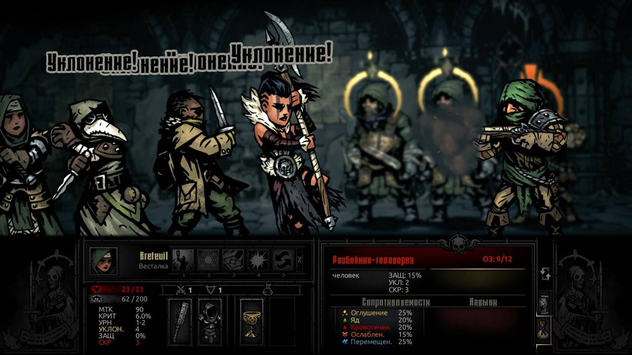 Напомним, что Darkest Dungeon, вышедшая зимой 2016 года (до этого она год пребывала в раннем доступе), — во многом уникальный мрачный рогалик. Здесь мы отрядом из 4 героев зачищаем подземелья, заботясь не только о том, какое умение применить в пошаговых сражениях, но и о том, как не дать своим подопечным сойти с ума из-за накапливающегося стресса, превратиться из бравого крестоносца в труса, пропускающего свой ход, или в психопата, нападающего на союзников.