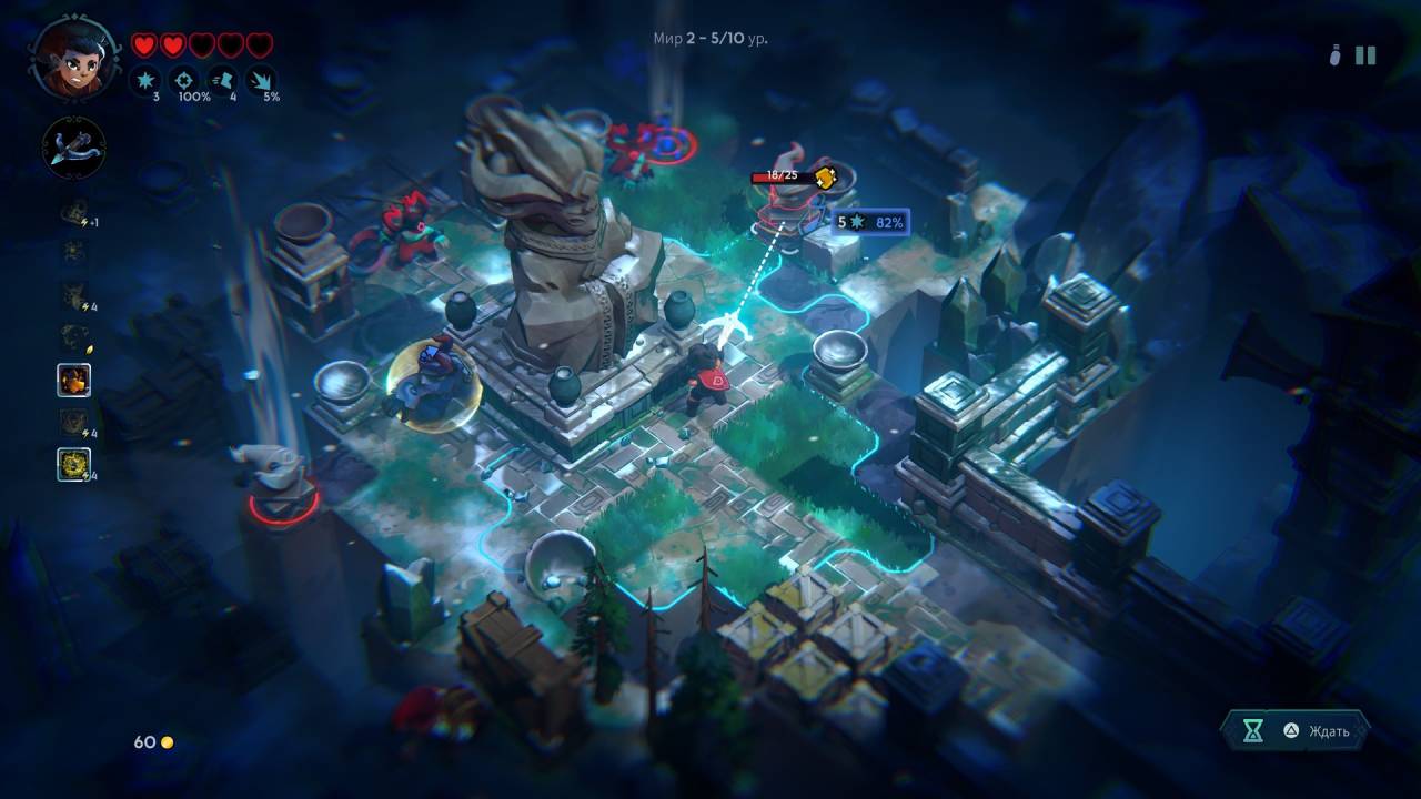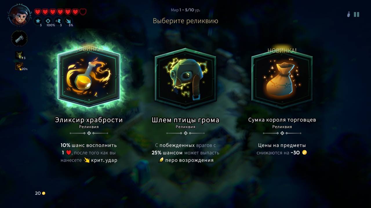 Проблема лишь в том, что таких сборок в игре очень мало. Да и разница между «полноценными» билдами, построенными вокруг определённых механик, и наборами обычных случайных артефактов очень велика — особенно это заметно во втором и третьем мирах, где без синергии между «пассивками» приходится долго стрелять по живучим противникам. Плюс не все бонусы одинаково полезны. Например, артефакт, с которым пропуск хода повышает урон и замораживает следующую цель, делает персонажа значительно сильнее, чем артефакт с увеличенным шансом критического урона по раненому противнику.
