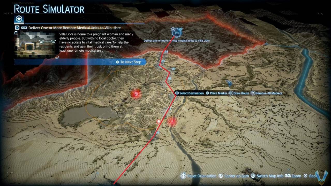 Ваша следующая цель — отправиться в Вилья-Либре. Она расположена на северо-западе от текущего положения, и, судя по карте, между вами и деревней лежит лагерь вооружённых выживальщиков. Когда примете поручение и настанет момент «проложить маршрут», можете воспользоваться нашим вариантом:
