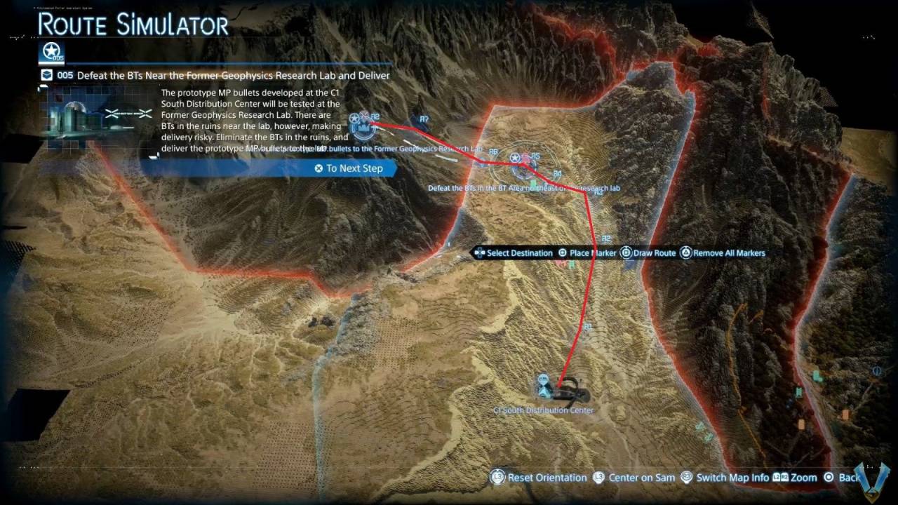 Когда уничтожите всех 8 Тварей, вернитесь к укрытию, заберите свой груз, и двигайтесь через очищенные от Тварей руины. Ваша цель — геофизическая лаборатория на вершине скалы. Отсюда уже ничто не мешает вам до неё добраться — бегите напрямую. Когда дойдёте до лаборатории, взаимодействуйте с терминалом, передайте груз и подключите зону к хиральной сети. За это вы получите награды: