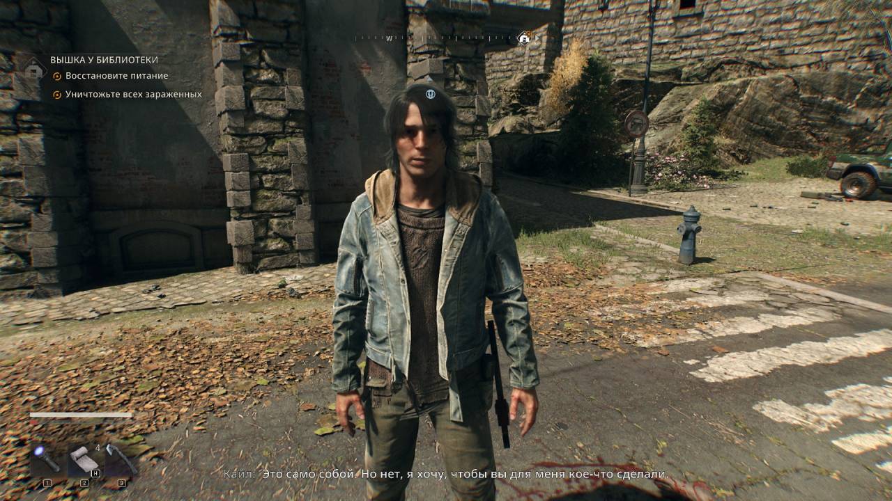 Правда, тему эту сценаристы отработали не до конца. Довольно скоро Кайл, который грозно выглядит и способен голыми руками отрывать врагам головы, превращается в послушного мальчика на побегушках у красотки Оливии — а та, вообще-то, работала в лаборатории Барона. Ещё он помогает шерифу и другим выжившим, которые регулярно спамят в наш журнал своими поручениями починить водопровод, найти пропавших родственников и так далее. У Кайла даже голос меняется, перейдя от рыка из первых кат-сцен к спокойному и будничному тону героя ролевых игр, готового на всё ради лута и новых уровней.