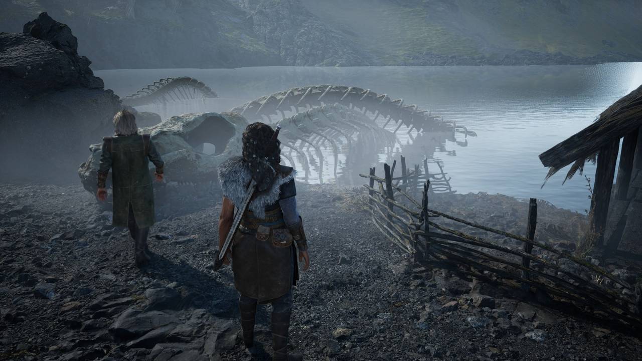 Однако у меня изначально было больше ассоциаций с другой игрой — с Hellblade: Senua’s Sacrifice и её сиквелом. В главной роли тут тоже девушка с глазами, полными боли, а вокруг — невероятные исландские пейзажи, холодная красота которых не только вдохновляет, но также рождает тревожное чувство одиночества и опасности перед лицом этого огромного, вечного и преимущественно пустынного мира, где есть только вода, небо, камни и скелеты огромных рыб.