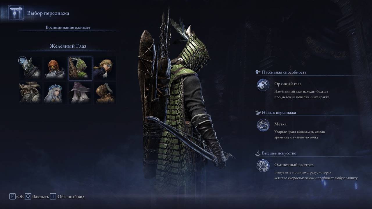 Железный Глаз — специалист по дальнему бою, особенно эффективен с луками. Однако благодаря высокому показателю ловкости он также уверенно обращается с мелким оружием ближнего боя, таким как кинжалы и изогнутые мечи. Тем не менее, его крайне низкая живучесть делает его не лучшим выбором для лобовых атак — использовать оружие ближнего боя следует с особой осторожностью.