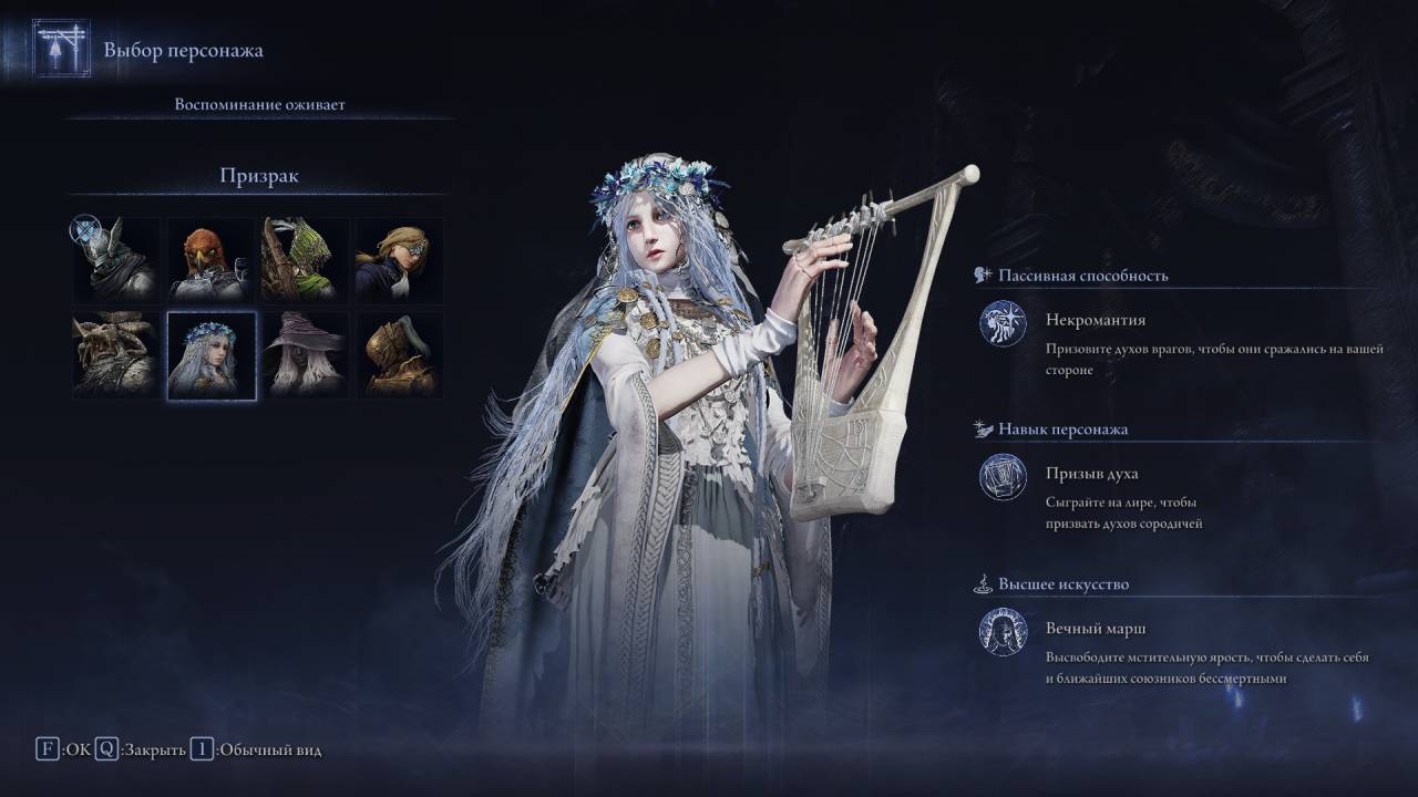 Призрак — это персонаж поддержки. Благодаря высоким атрибутам веры она легко справляется с атакующими заклинаниями, однако не может восполнять ОК, что серьёзно ограничивает её урон. Её пассивная способность «Некромантия» призывает тени поверженных врагов на помощь — они отвлекают противников и наносят урон.