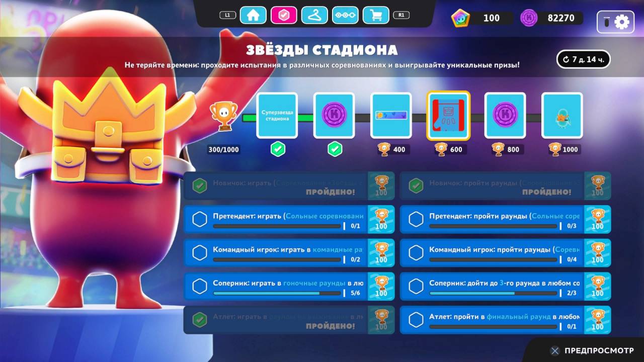 Бесплатная версия пропуска, конечно, есть, как в любой подобной игре. Но по сравнению со старыми пропусками ценных подарков здесь заметно меньше. Аватарок, статусов, расцветок и победных поз выдают достаточно, а вот костюмов практически нет — приобретайте платную версию. Без вложений удастся накопить с помощью пропуска 300 шмяксов, так что новички уже в четвёртом сезоне смогут активировать платную версию пропуска, если отдавать кровные не хочется.