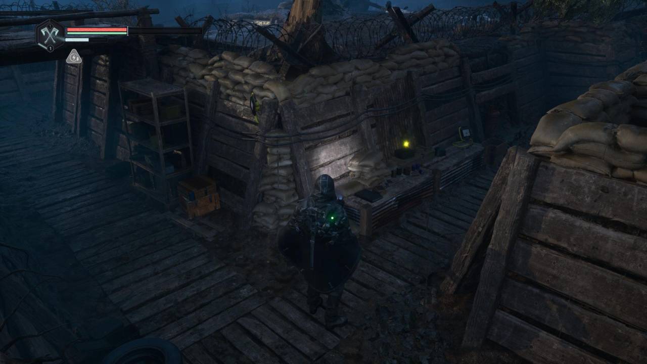 Пройдя по сюжету через руины, вы попадаете в траншеи и окопы. Двигайтесь по этим траншеям, исследуйте все. При выходе с левой стороны должны быть точкавзаимодействия, которая даёт письмо «Сабинийский фронт» и золотые часы. Это знаменует начало благого дела. Вернитесь на ферму, в подвал дома, где находился Эрнест Каддел, и через меню торговли передайте тому золотые часы, тем самым свершив благое дело.