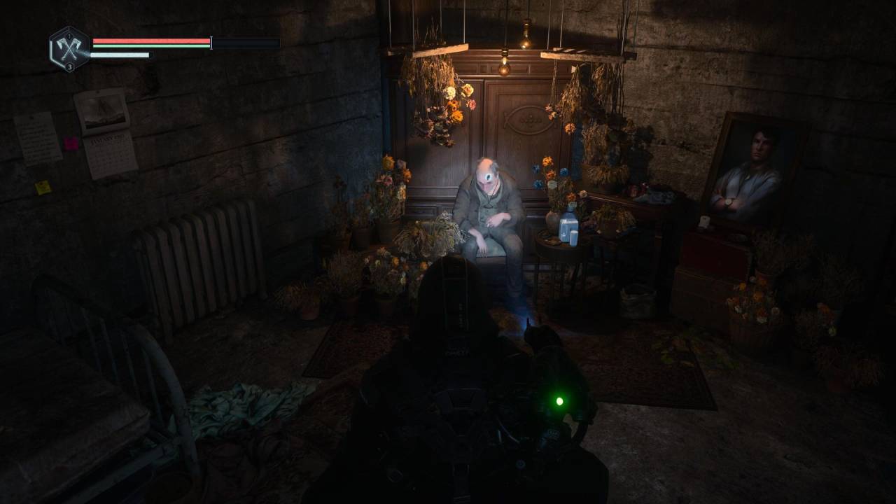 Отправляйтесь к местоположению временной петли (или где она была, если вам удалось её закрыть) и двигайтесь по тропинке на северо-запад. Поднимитесь по лестнице, чтобы попасть в лагерь выживших. Подойдите к женщине с левой стороны и через меню торговли передайте ей пузырёк с лекарством атенололом, чтобы завершить это благое дело.