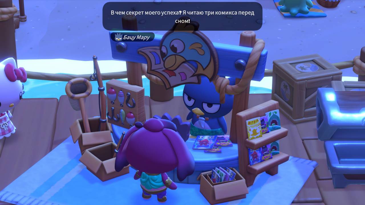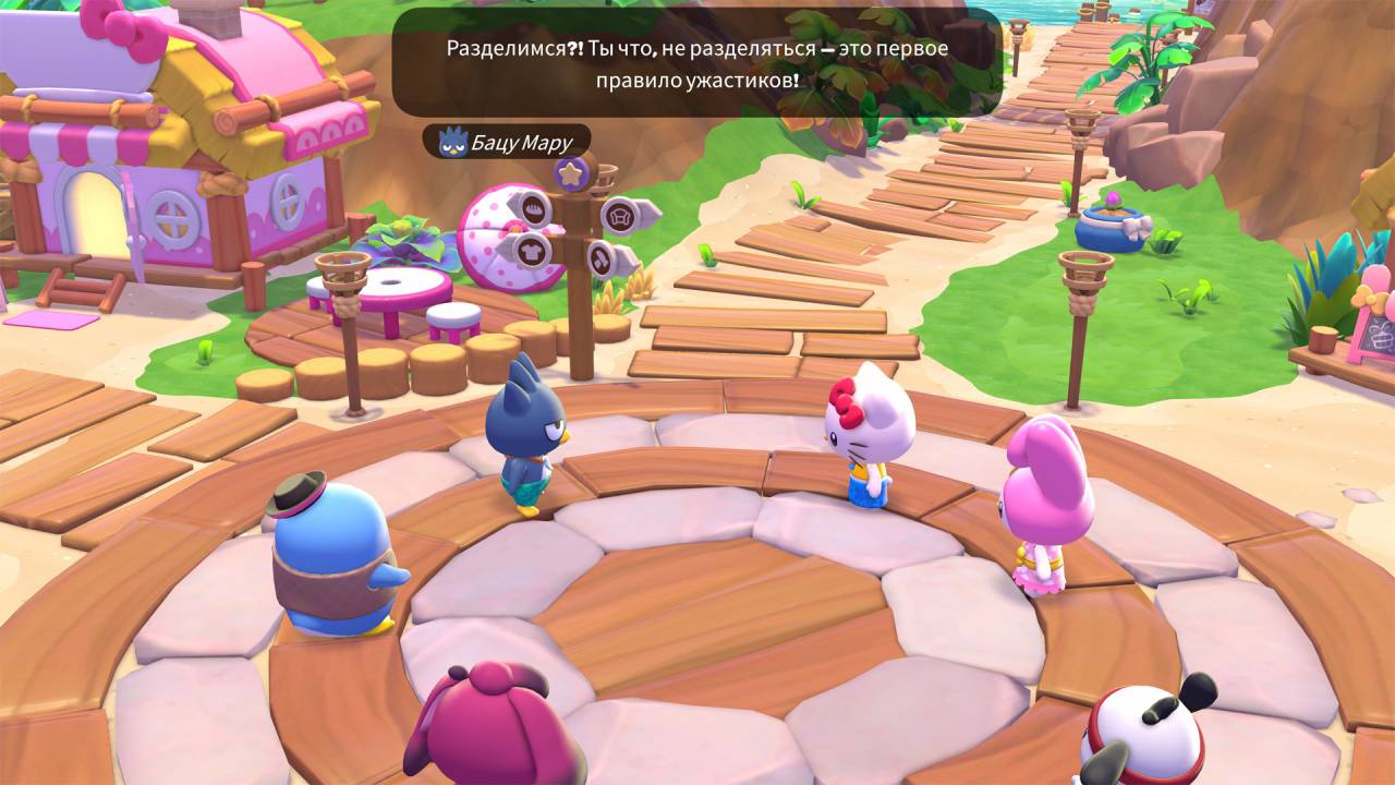 После нескольких часов в Island Adventure мои сомнения быстро развеялись. Игра приятно удивила и объёмом контента, и тем, как туда подбрасывали дополнительные активности. Теперь разбуди меня посреди ночи, и я расскажу, как сильно обожает приколы Бацу Мару, какой напиток предпочитает Чококэт и по какому празднику фанатеет Куроми. В Hello Kitty Island Adventure всё крутится вокруг идеи дружбы с остальными персонажами Sanrio, на их взаимоотношениях завязан сюжет, а то, как добродушно герои общаются с игроком, растопит любое сердечко.