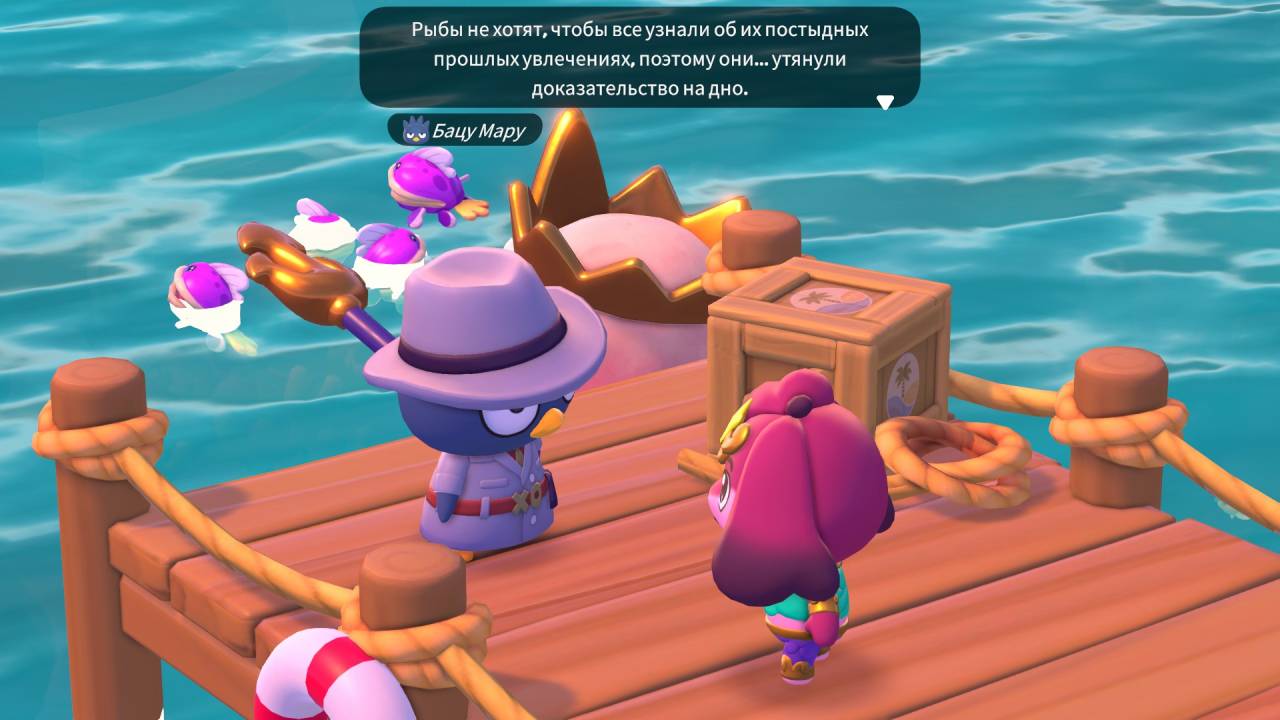 Других активностей на острове тоже хватает. Открываются они тоже постепенно, по ходу основной сюжетной линии, и опять же завязаны на развитии дружбы с персонажами. Например, тесное общение с Бацу Мару открывает доступ к рыбалке в формате приятной мини-игры. Впрочем, мне после травмы детства от уровней за кота Бига в Sonic Adventure любая рыбалка кажется приятной. Коллекционирование в игре предполагает поимку всех рыб в каждом биоме, и это только на первый взгляд кажется простой задачей. Помимо удочки у нас будет ещё и сачок, которым можно ловить ползающих и летающих зверушек (это тоже часть коллекционирования), пока те не убежали, а потом сдавать их в заповедник.