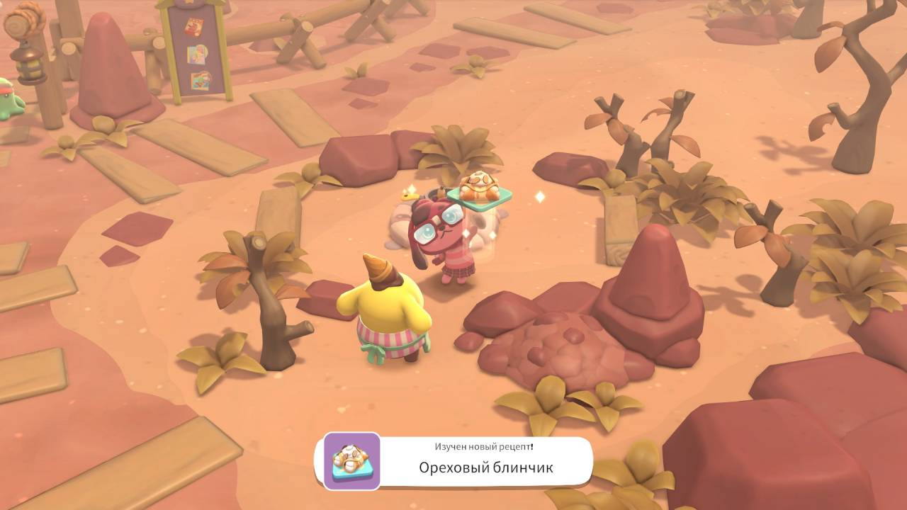 Открытие новых территорий тесно связано с дружбой — к ней (а точнее, к её уровням) привязаны и задания в игре. У нас есть основная сюжетная линия, есть квесты, связанные с получением новых умений и инструментов (вроде удочки, сачка или маски для плавания). Есть просто задачки от друзей — что-то найти, скрафтить, приготовить, сфотографировать. Все они разблокируются постепенно, когда мы достигаем определённого этапа дружбы с тем или иным персонажем.