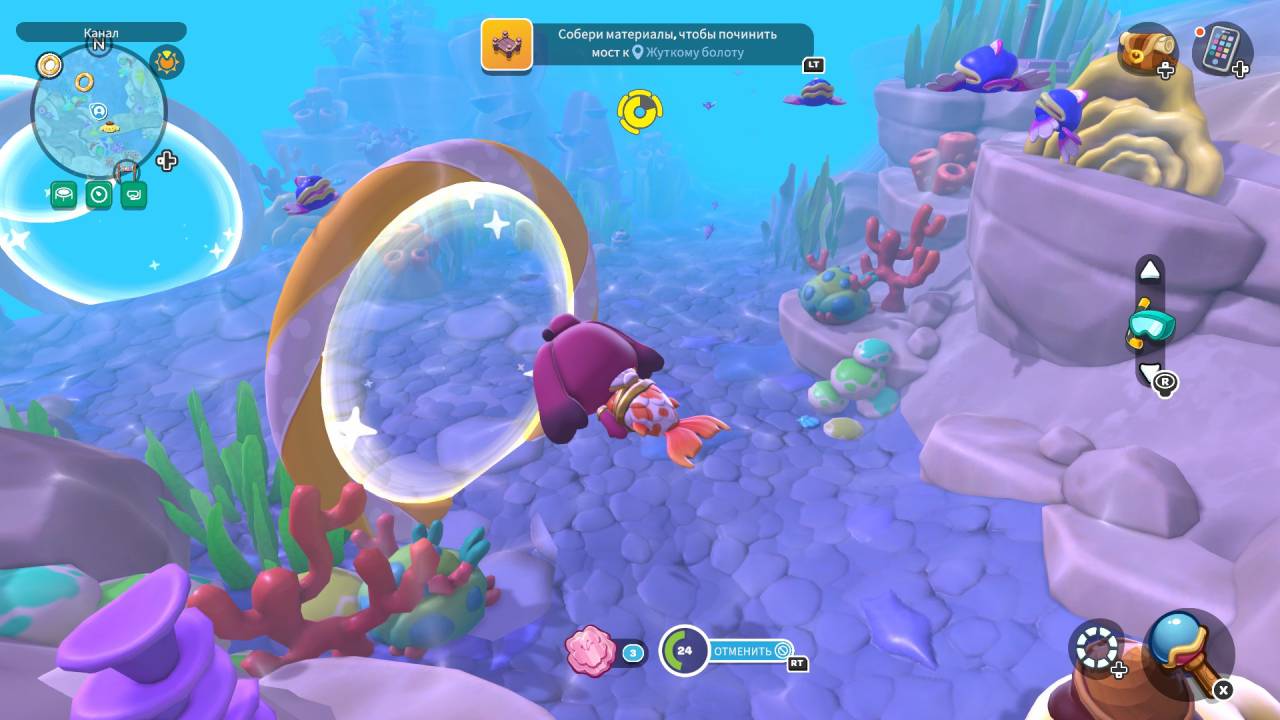 Стоит отметить, что мобильные корни дают о себе знать (изначально Hello Kitty Island Adventure была выпущена для Apple Arcade). Не нужно играть залпом (да и не получится при всём желании), прелесть «Островного приключения» — в порционности: заходишь каждый день на часок-другой, получаешь свою дозу милоты, дружелюбия и уюта, а потом возвращаешься в реальный мир. Понимаю, что кого-то такая дозированность может отпугнуть, но мне она кажется идеальной, и я вообще предпочитаю запускать игру перед сном — действует умиротворяюще и лучше любой сказки на ночь.