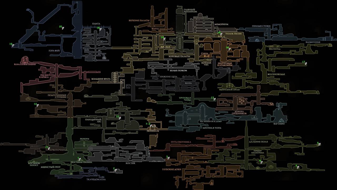 А вот «Арсенал» (Arsenal) уже куда серьёзнее: чтобы его получить, придётся собрать все пятьдесят один инструмент. Каждый из них наделяет героя особыми бонусами, и, как и в случае с умениями, карту стоит держать под рукой, чтобы ничего не упустить.