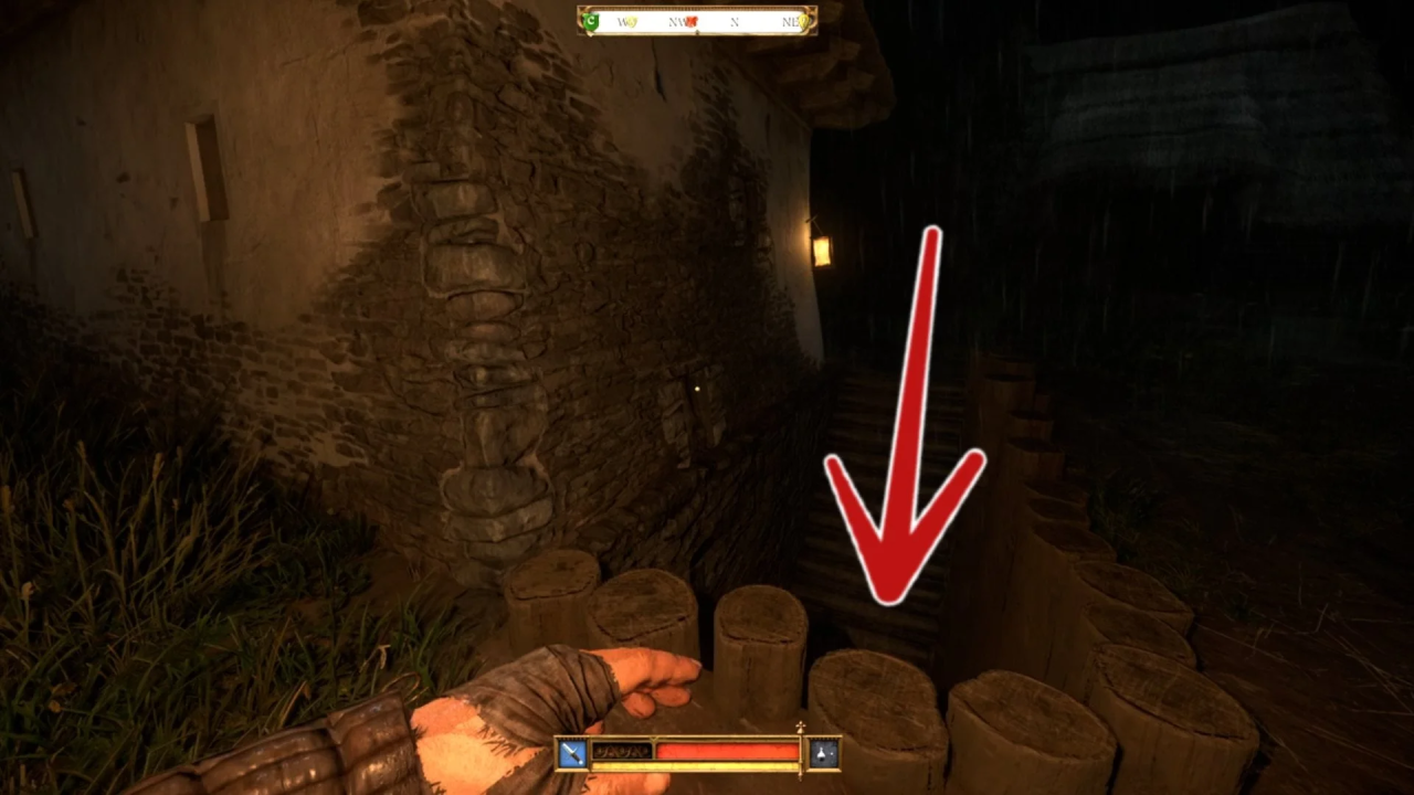 Отправляйтесь во двор на север от ратуши. Когда увидите лестницу, ведущую вниз, значит, вы оказались в нужном месте. Ночью у лестницы будет только один страж. Пригнитесь и бросьте камень, чтобы его отвлечь. Затем проберитесь вниз по ступенькам. Лестница ведёт в тюрьму ратуши.