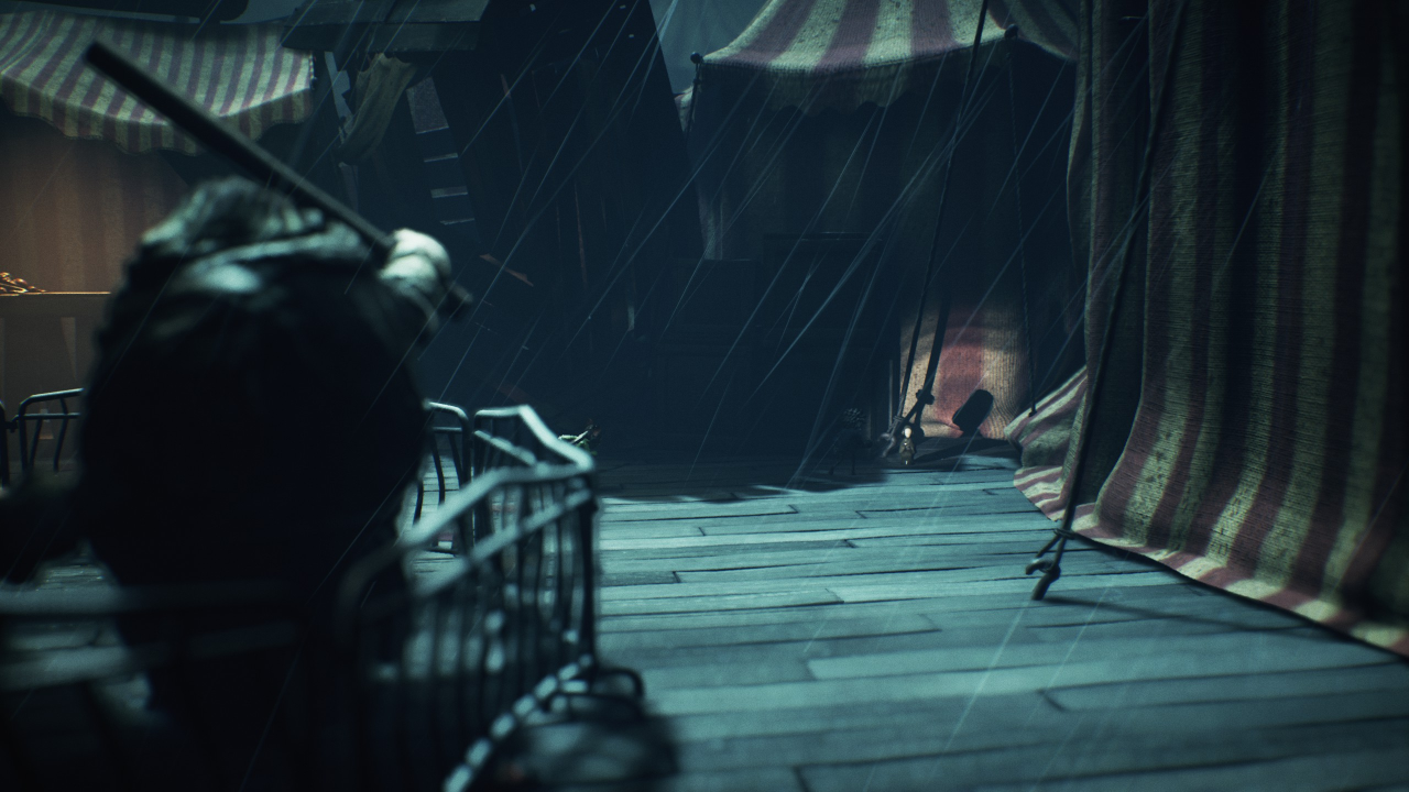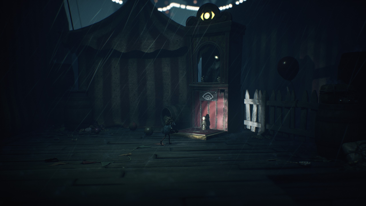 Спустя некоторое время, пробравшись вглубь карнавала, как только выберетесь из-под половиц (после боя с манекенами), сразу же развернитесь и идите в левую сторону. Обнаружите путь наверх. Поднимитесь и подберите коллекционную куклу № 7.