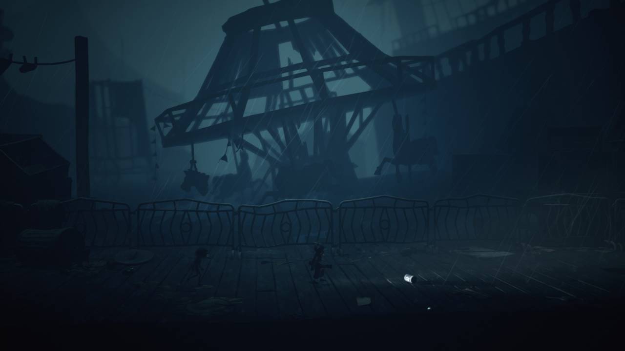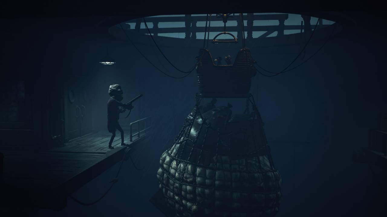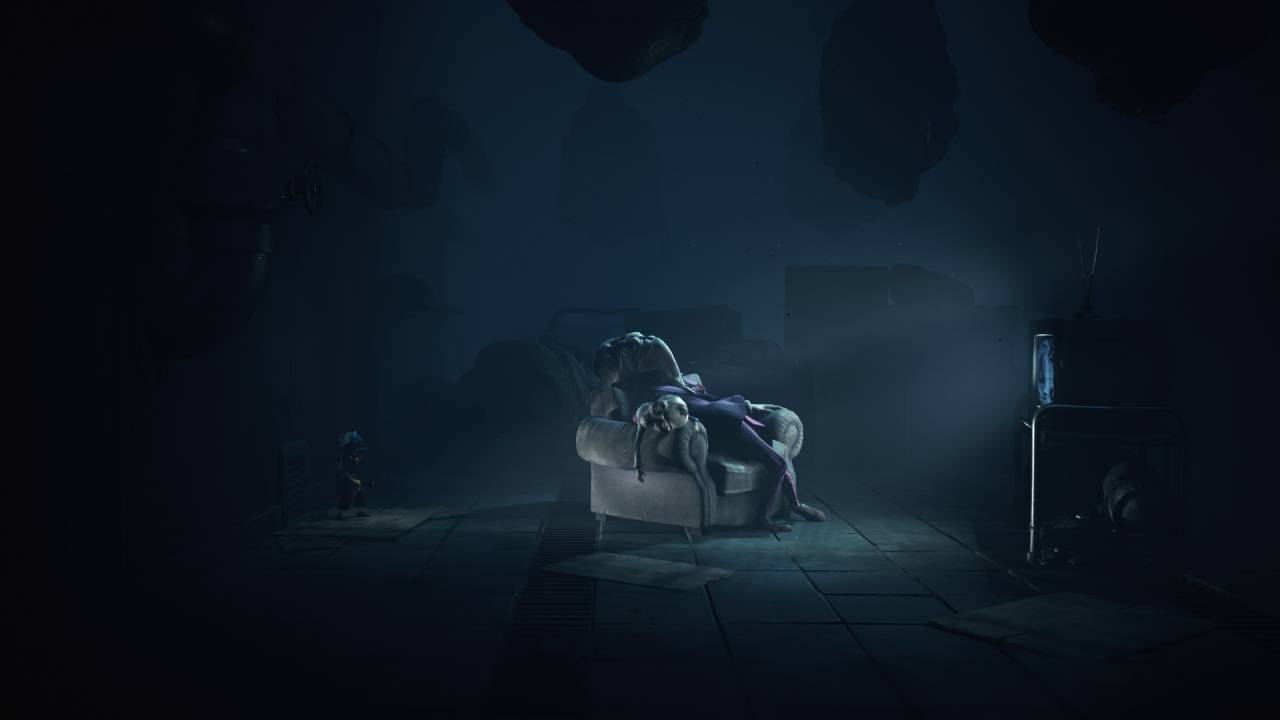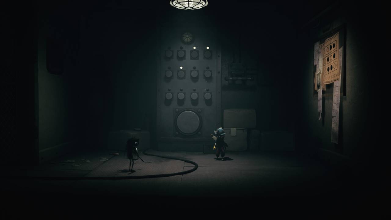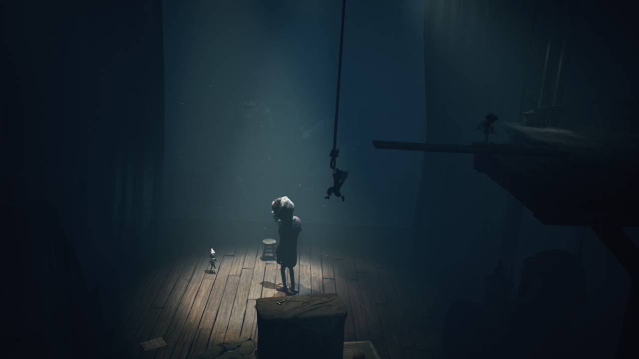 Некоторые сцены опять же цитируют эпизоды из прошлых игр — например, нас запирают на арене и заставляют бить нападающих тяжёлым предметом. Но тут надо уточнить, что, в отличие от второй части, теперь в этом участвуют оба персонажа — Малой стреляет из лука, а Одна добивает гаечным ключом, уничтожая головы. А всё потому, что в Little Nightmares впервые появился кооператив. И у каждого тут своя роль. Малой стреляет из лука не только по врагам, но иногда и по важным кнопкам или верёвкам, чтобы убрать препятствие или помочь с решением загадки. А Одна с помощью гаечного ключа может и проход в стене пробить.
